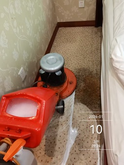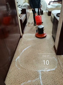 部分客房有不明污渍一定要及时清洗,不然造成地毯发霉发臭,霉菌深入纤维后,再贵的清洁剂都救不回来!霉斑扩散+异味渗透,最后只能换新地毯,成本翻倍,对于地毯的保养,我们建议使用频率高的场所3-6月清洗一次,普通场所保持一年一次频率即可,这样嫩保持地毯的蓬松感和质感,延长地毯使用寿命。